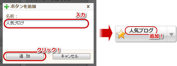 ボタンの追加専用のボタンがクリックリンクの一番最後にございますので、そちらをクリックして頂くと、上記のボタンを追加画面が表示されます。